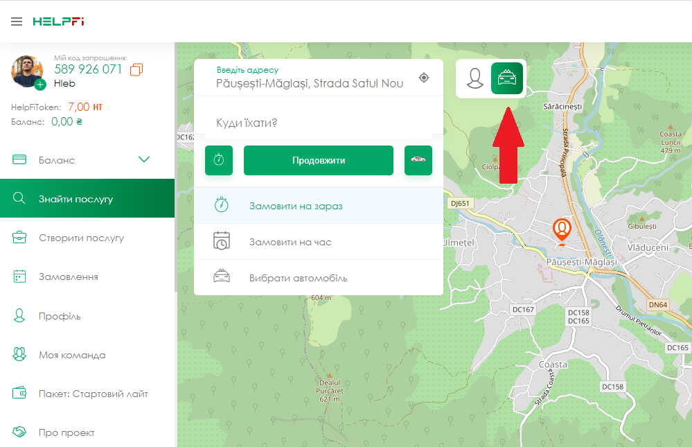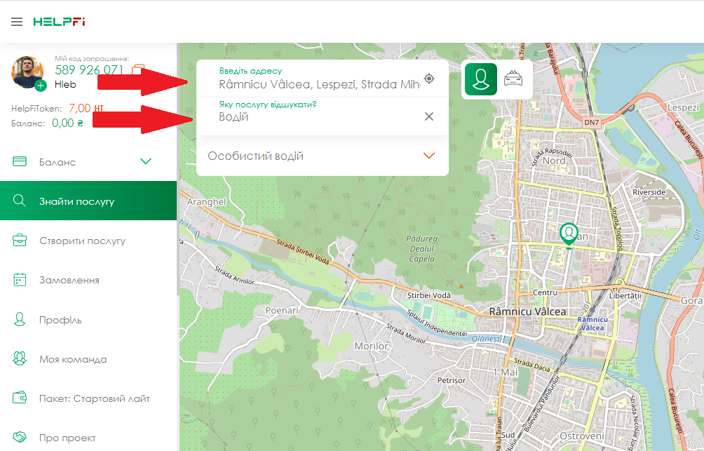 Виконавцем може стати будь-яка людина, від 18-ти років. Якщо ви надаєте послуги і хочете збільшити кількість клієнтів, HelpFi - допоможе вам у цьому! Після успішної реєстрації на сайті або в додатку, ви потрапляєте на головну сторінку додатку! Праворуч у вас розташована карта, зліва меню.